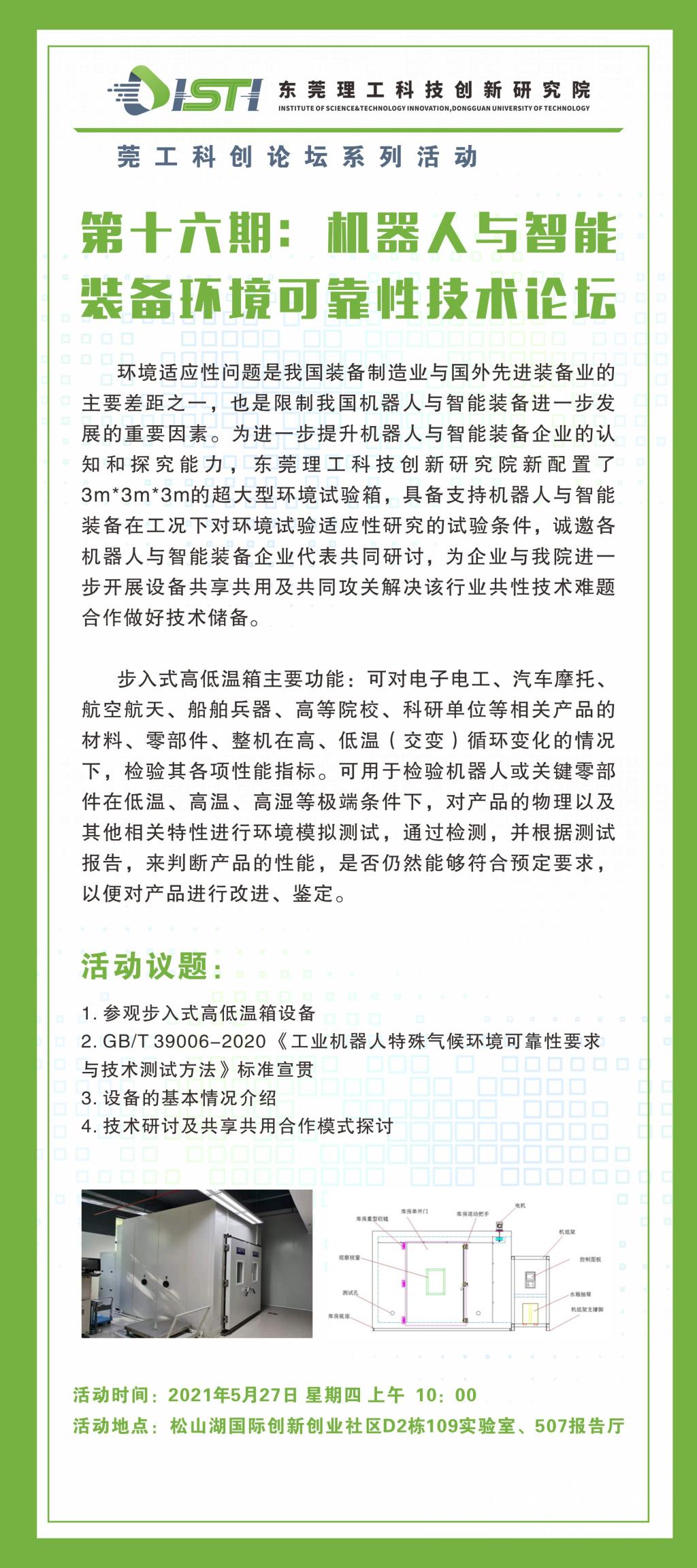 莞工科创论坛第十六期预告:机器人与智能装备环境可靠性技术论坛