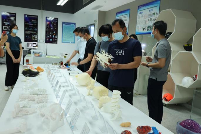 来宾一行参观3D打印与智能制造研究中心,深入实地了解建设情况。